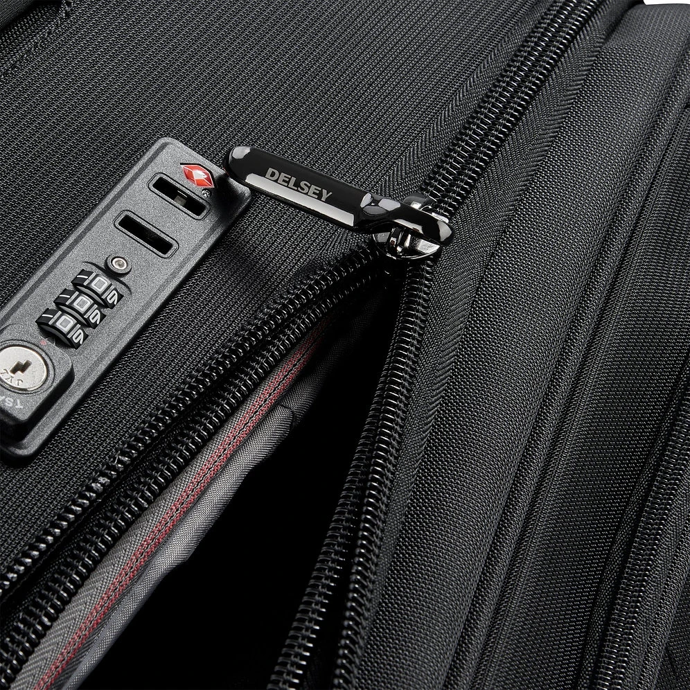 This bag keeps your items safe with DELSEY’s patented Zip SECURITECH®, which is 3 times more break-in resistant than a standard zipper. It also includes an integrated TSA-accepted combination lock to secure your luggage using your own 3-digit code. Suitable for frequent use, it is constructed with lightweight and long-lasting fabric